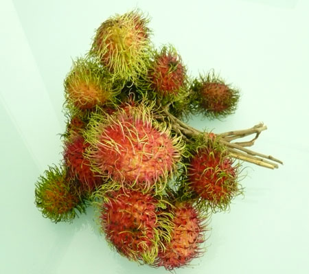 そういえば バリ島でサイクリングでキンターマ山から降りてきたとき 街路樹にこのランブータンが鈴なりにぶら下がっていたのを 思い出しました。
