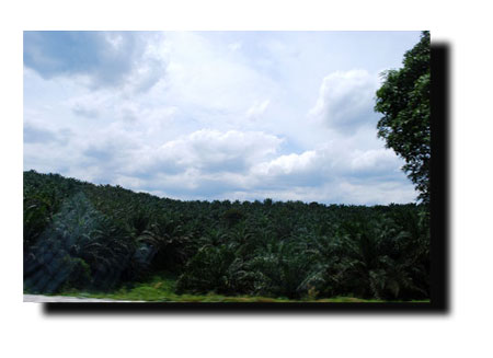アブラヤシの延々と続く土地を見てほしいと思って写真を撮りましたが 実際の感じとは違って広がりのない写真になってしまいました。